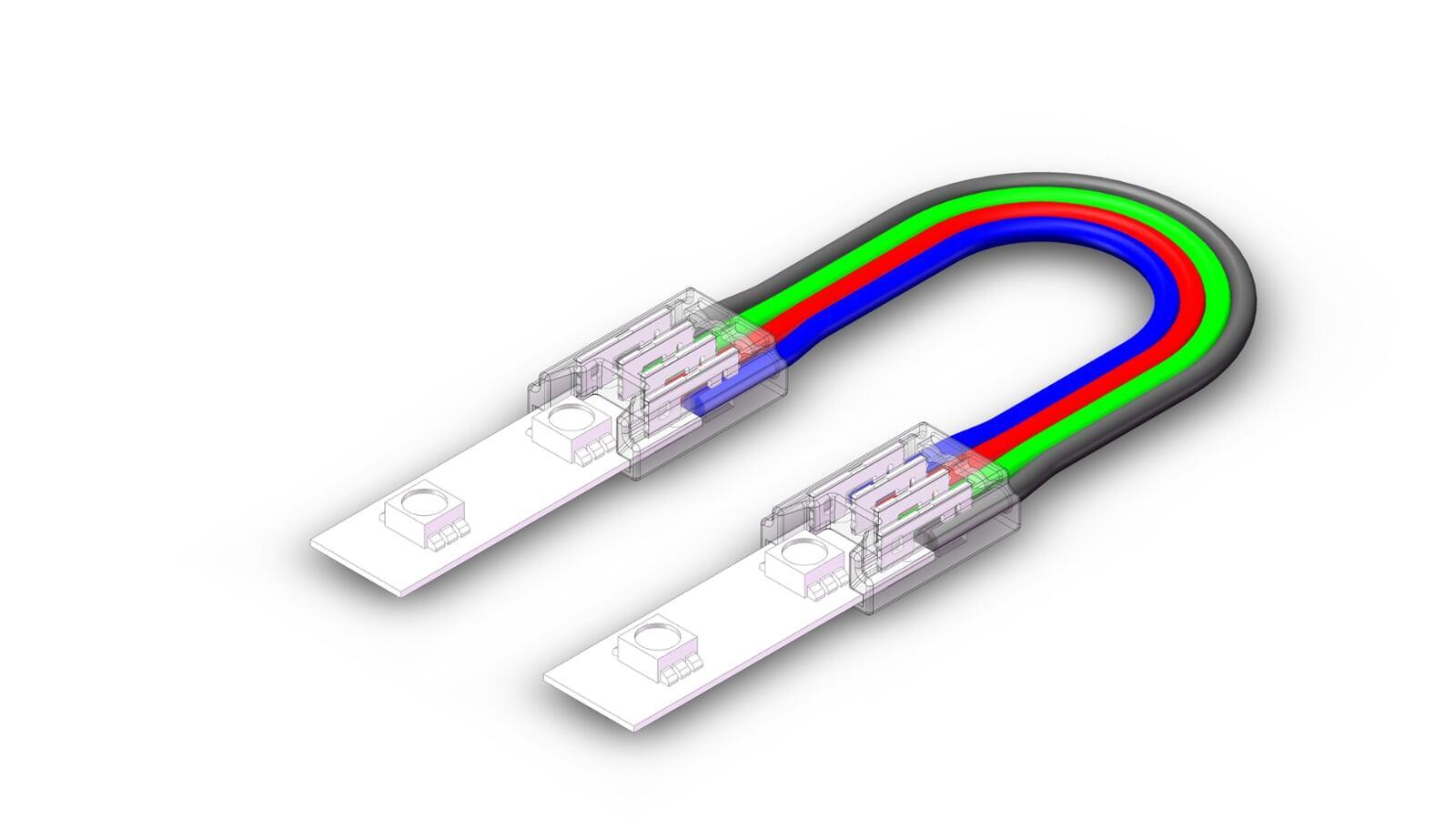 | 19# HR-S-SMD-4PIN-8MM-C | Strip to Strip Bridge | 8mm 4P SMD IP20 strip light | 5-48V/4A | 13.5x9.8x4.2mm | PC+Copper | 150MM Length 22AWG/0.52mm² | Transparent |